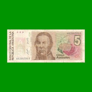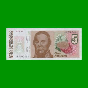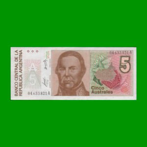 BILLETE DE AUSTRALES, 5 AUSTRALES, BOT 2814, ESTADO EXCELENTE+ .-