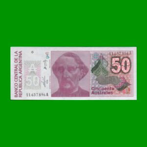 BILLETE DE AUSTRALES, 50 AUSTRALES, BOT 2827, ESTADO EXCELENTE+ .-