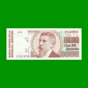 BILLETE DE AUSTRALES, 100.000 AUSTRALES, BOT 2892, ESTADO EXCELENTE+.-