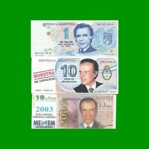 SERIE DE BILLETES PUBLICITARIOS CARLOS MENEM, COPIA/ FASCIMIL NO EMITIDOS ESTADO SIN CIRCULAR.-