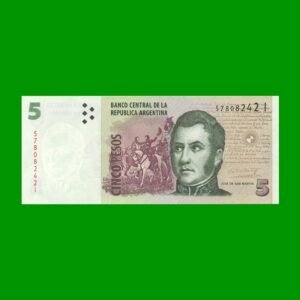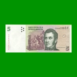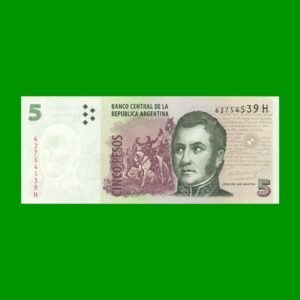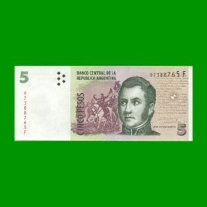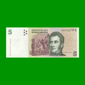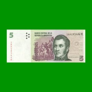 BILLETE PESOS CONVERTIBLES SEGUNDO DISEÑO $5,00, BOT 3335 ESTADO SIN CIRCULAR.-