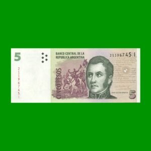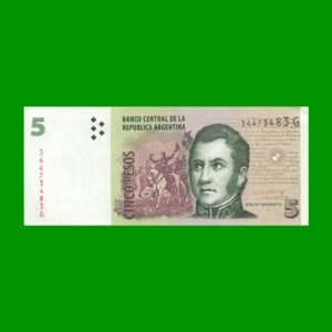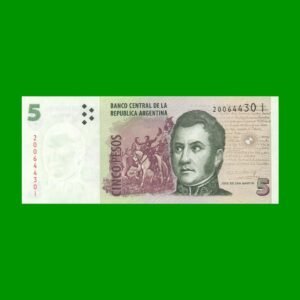 BILLETE PESOS CONVERTIBLES SEGUNDO DISEÑO $5,00, BOT 3331 ESTADO SIN CIRCULAR.-
