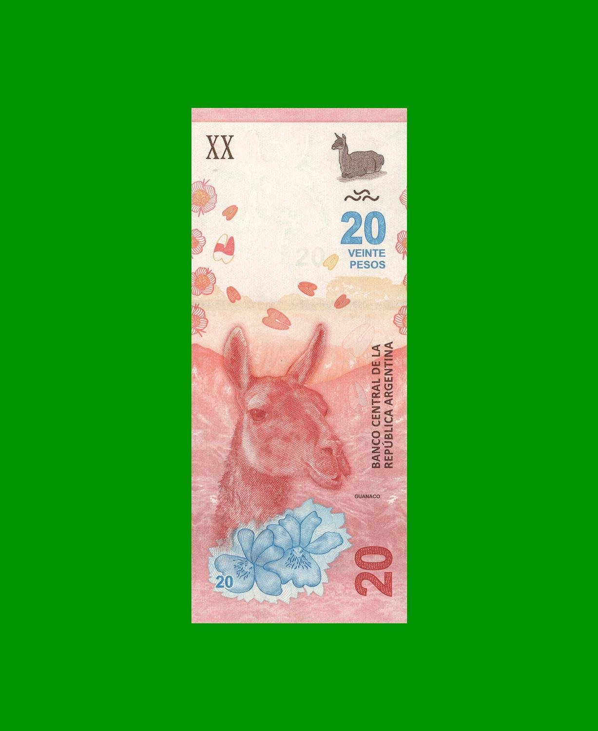 BILLETE ANIMALES AUTOCTONOS, REPOSICION, $ 20,00 BOT 5003 COL 822R SIN CIRCULAR.-