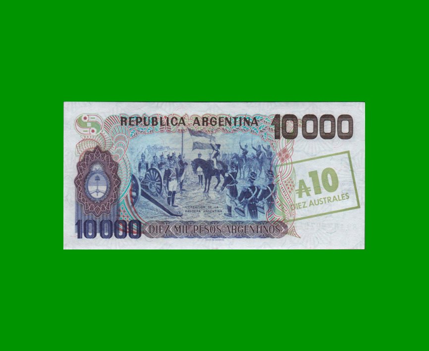 BILLETE DE $ 10.000,00 PESOS ARGENTINOS RESELLADOS A 10 AUSTRALES.-