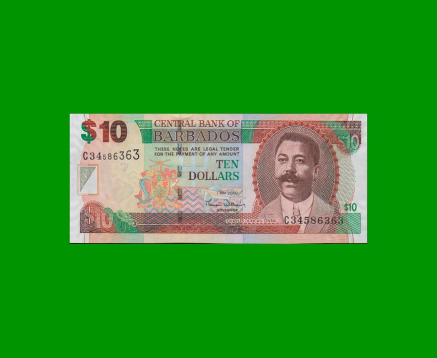 BILLETE DE BARBADOS, 10 DOLARES.-