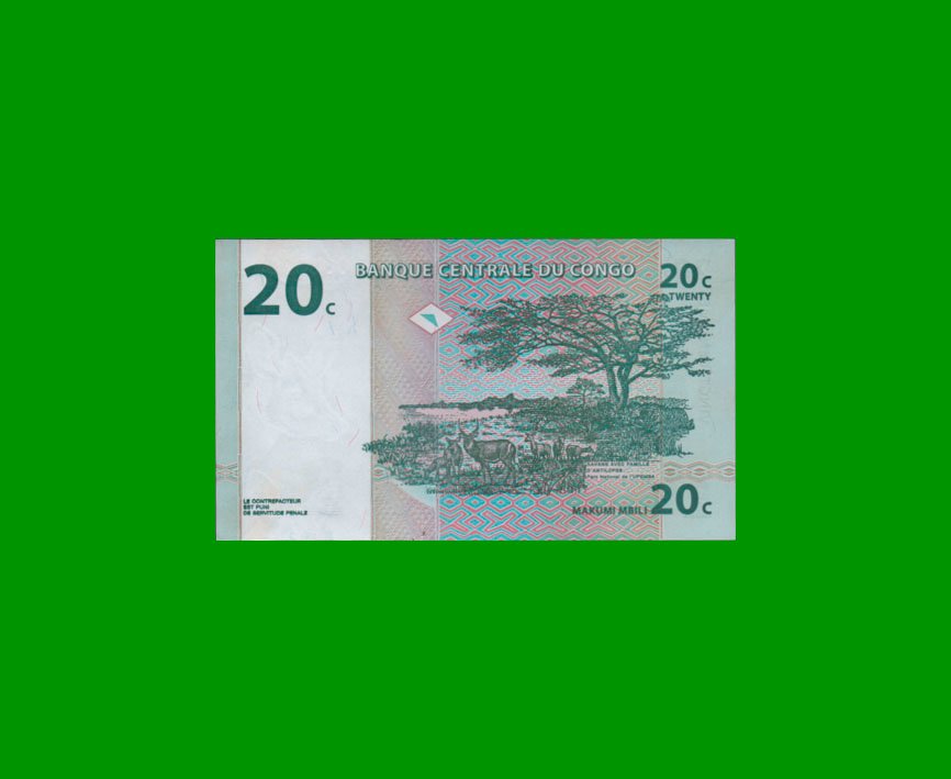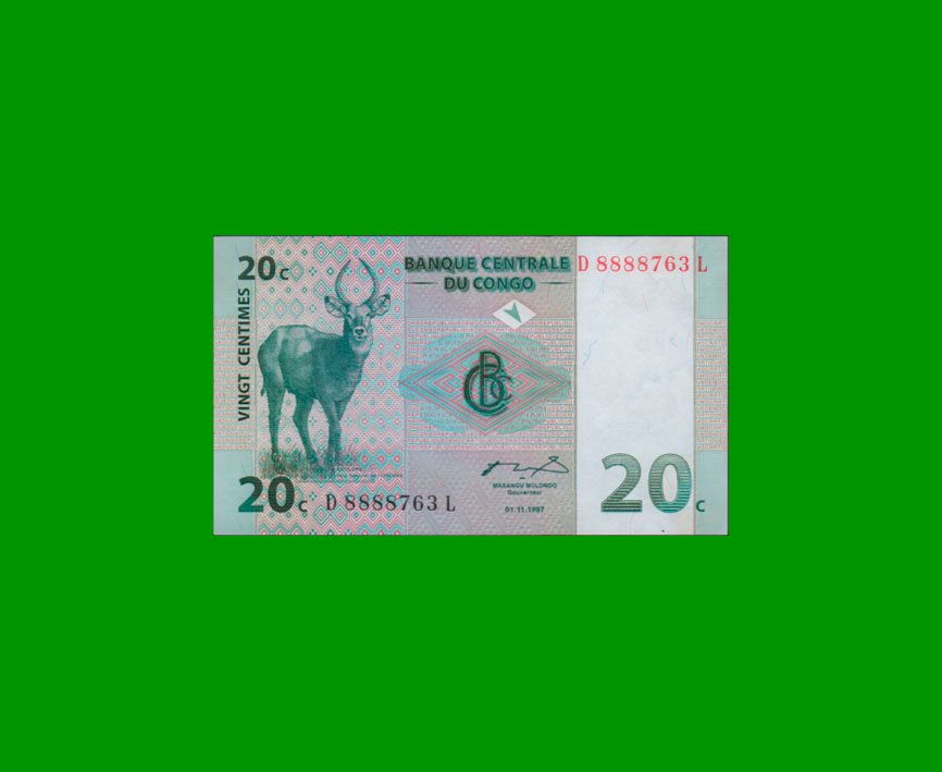 BILLETE DE CONGO 20 FRANCOS, PICK 83, ESTADO SIN CIRCULAR.-