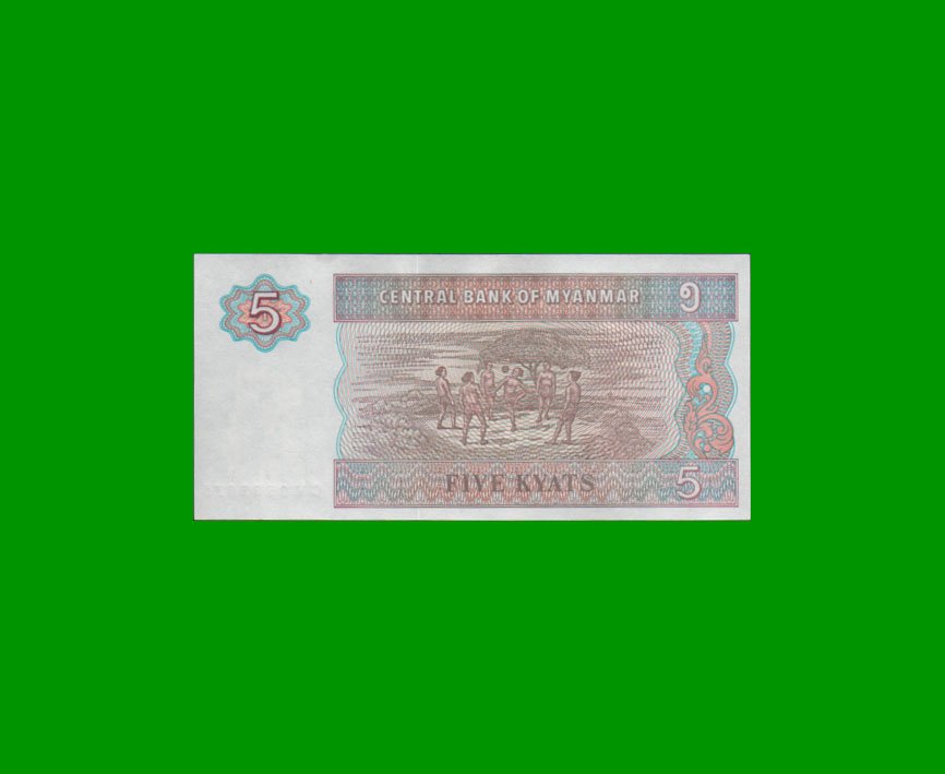 BILLETE DE MYANMAR (BIRMANIA) 5 KYATS, PICK 70, ESTADO SIN CIRCULAR.-