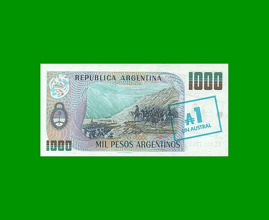 BILLETE DE PESOS ARGENTINOS, $ 1.000,00 RESELLADOS A 1 AUSTRAL, BOT 2701, ESTADO SIN CIRCULAR.-