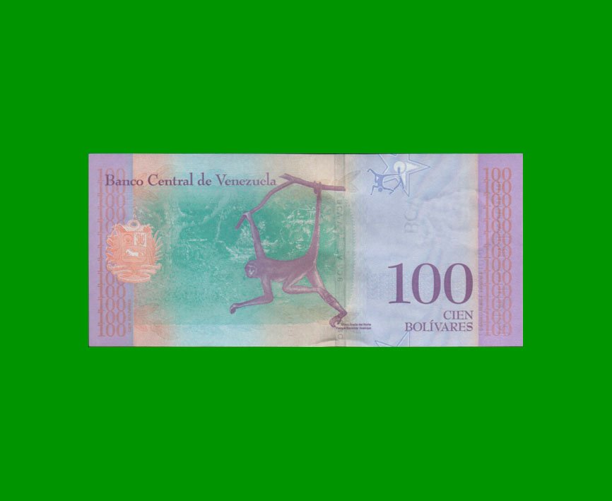BILLETE DE VENEZUELA 100 BOLIVARES (SOBERANOS), PICK 106, ESTADO SIN CIRCULAR.-