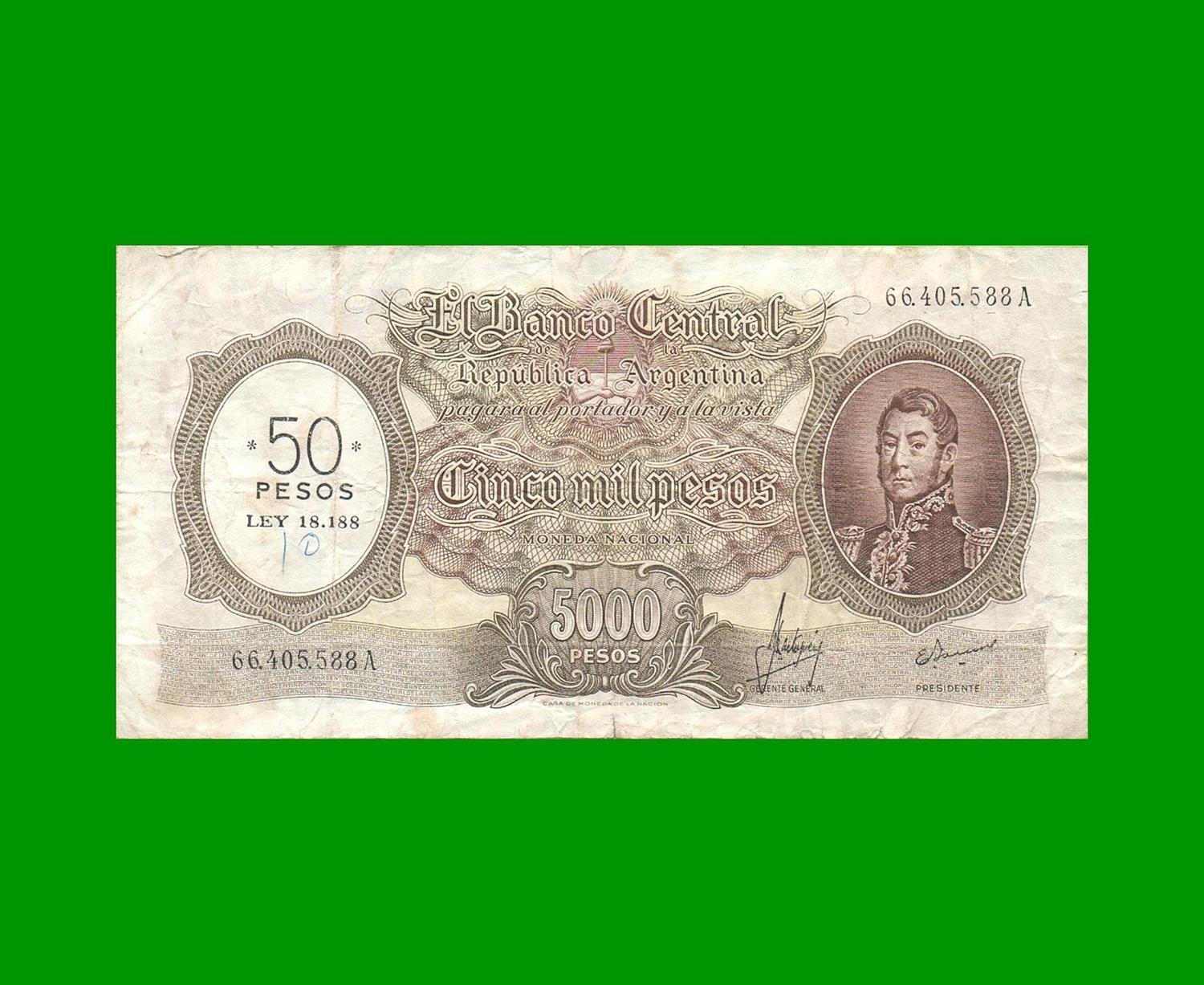 BILLETE MONEDA NACIONAL $ 5.000,00, RESELLADO A 50 PESOS LEY 18.188.-