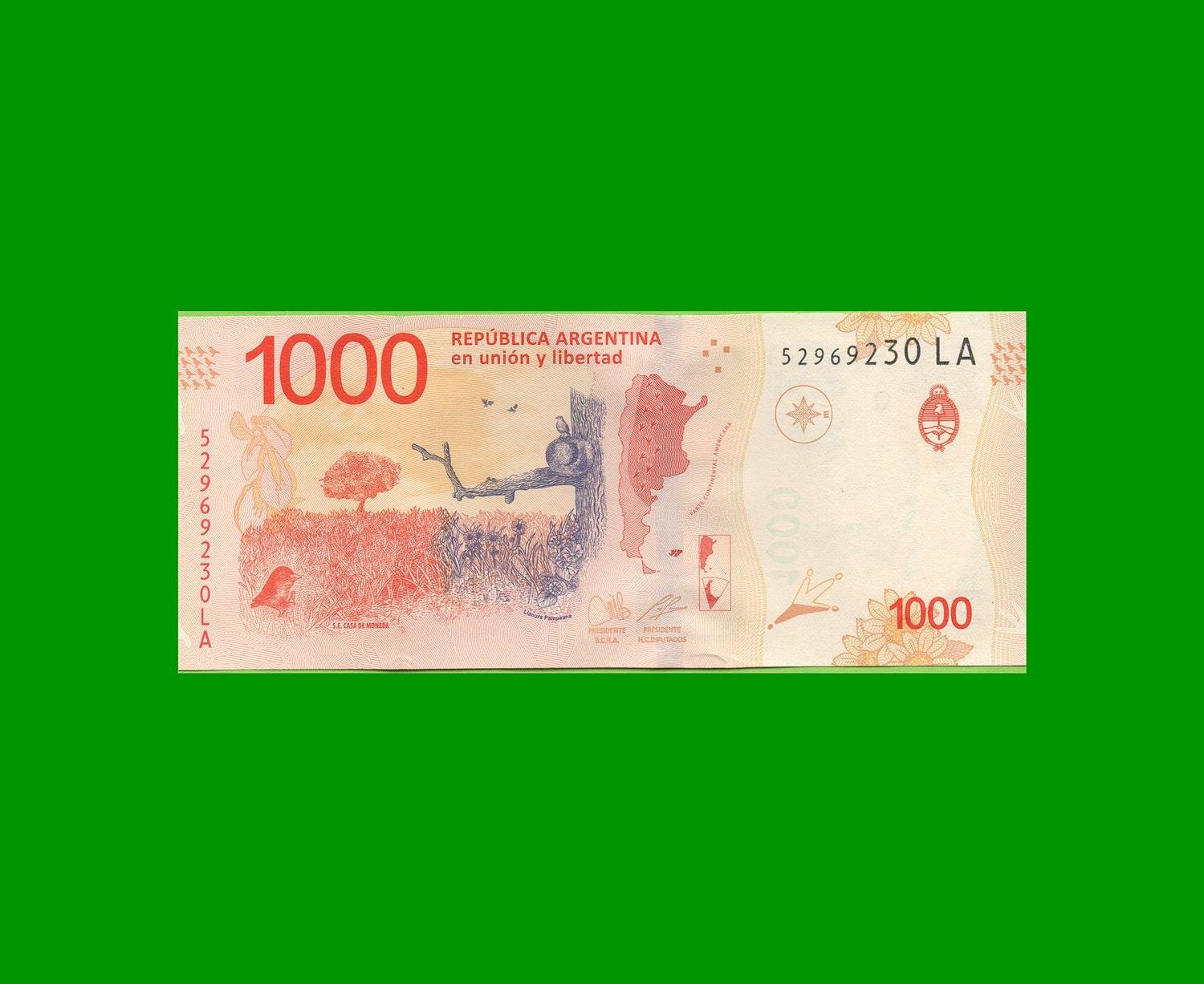 BILLETE PESOS ANIMALES AUTOCTONOS $ 1.000,00, COL 836aj, ESTADO SIN CIRCULAR.-
