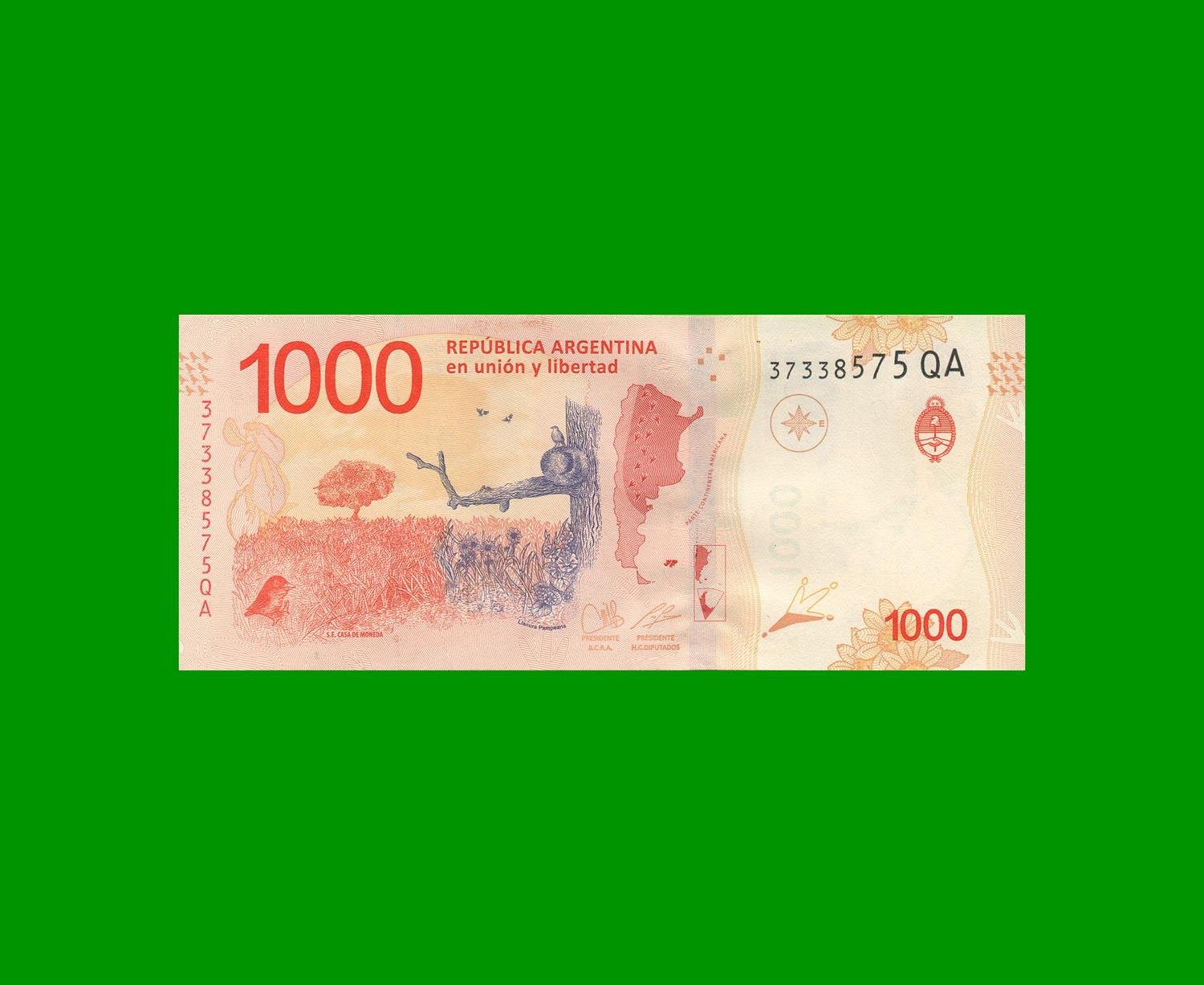 BILLETE PESOS ANIMALES AUTOCTONOS $ 1.000,00, COL 836at, ESTADO SIN CIRCULAR.-
