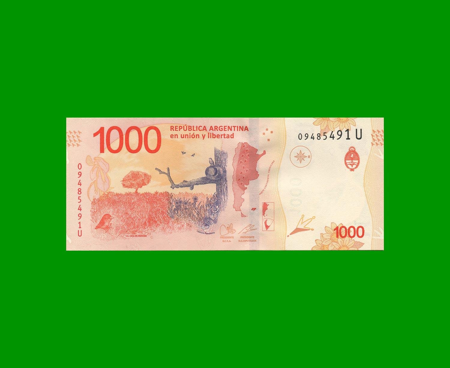 BILLETE PESOS ANIMALES AUTOCTONOS $ 1.000,00, COL 836r, ESTADO SIN CIRCULAR.-