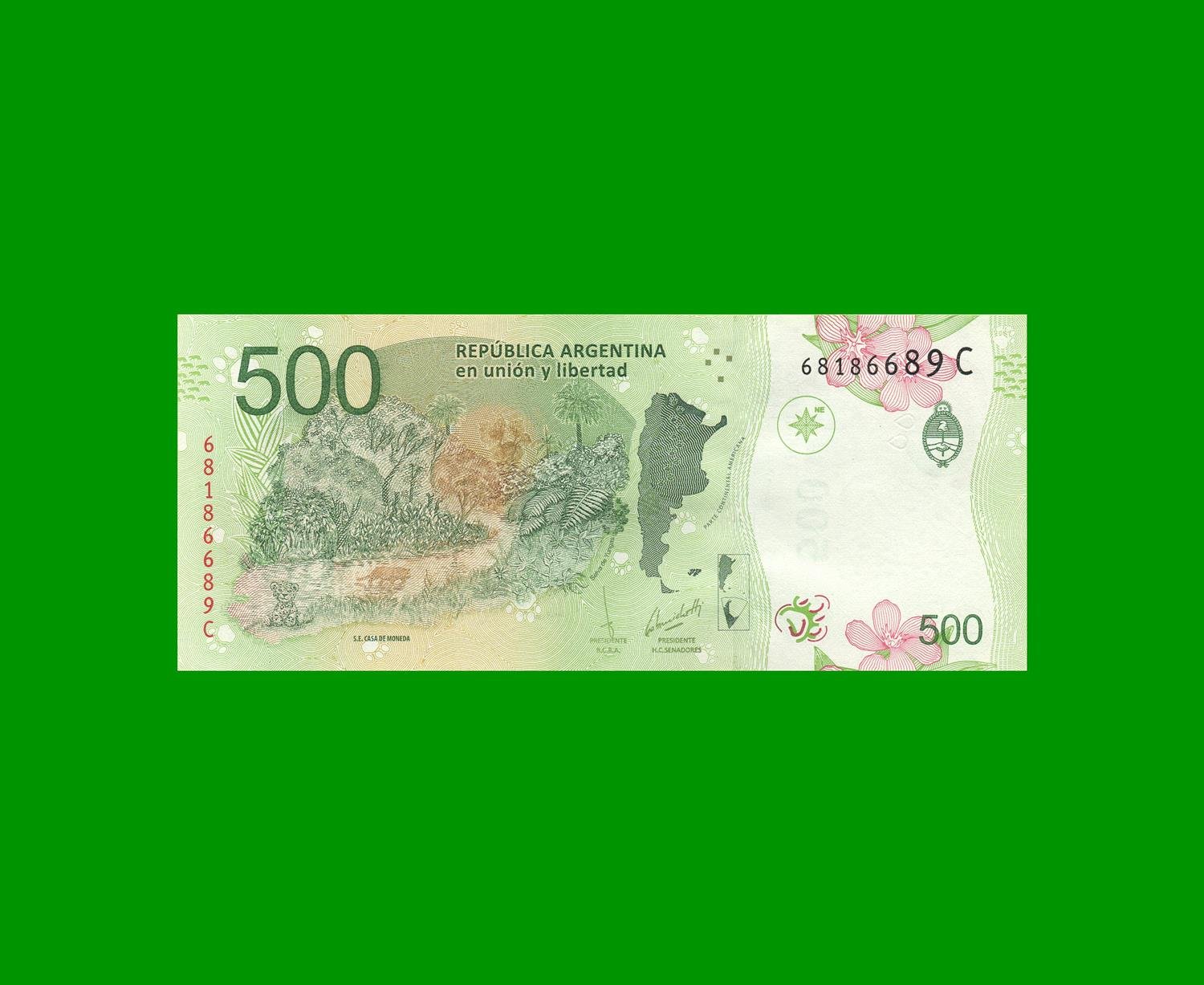 BILLETE PESOS ANIMALES AUTOCTONOS $ 500,00, BOT 5803 ESTADO SIN CIRCULAR.-