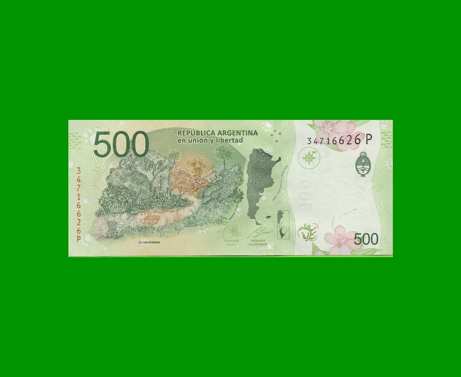 BILLETE PESOS ANIMALES AUTOCTONOS $ 500,00, COL 832f, ESTADO SIN CIRCULAR.-