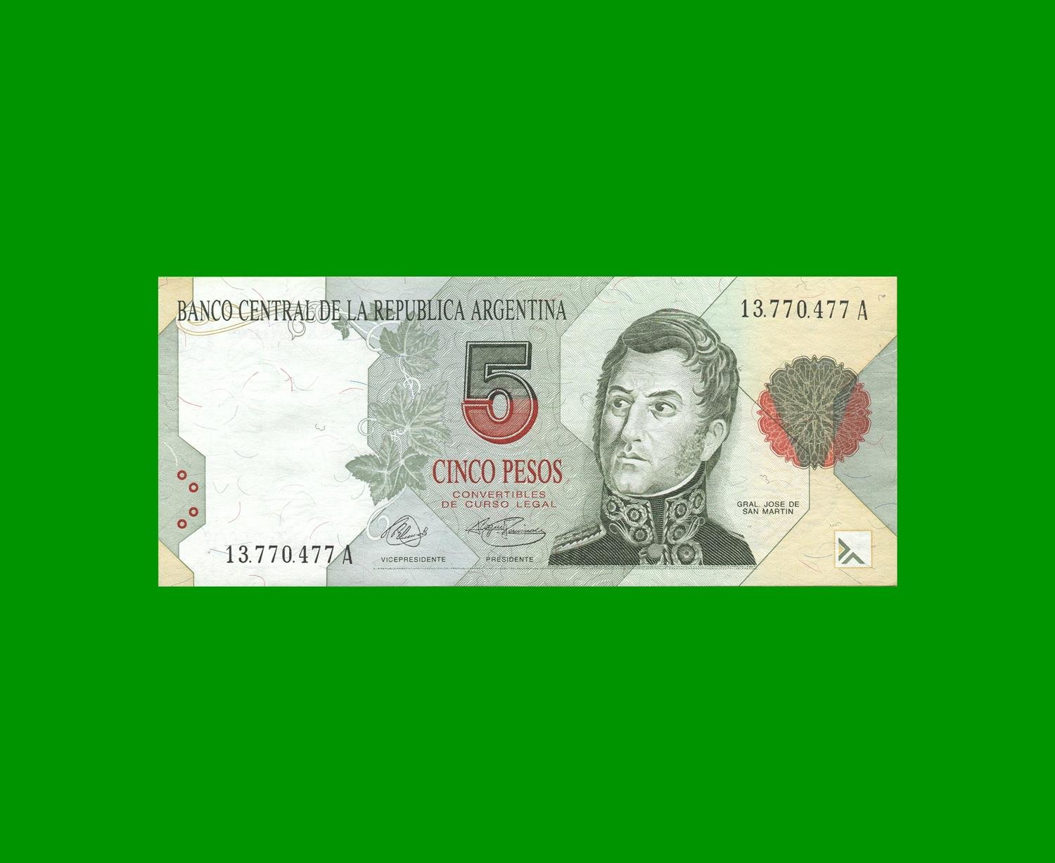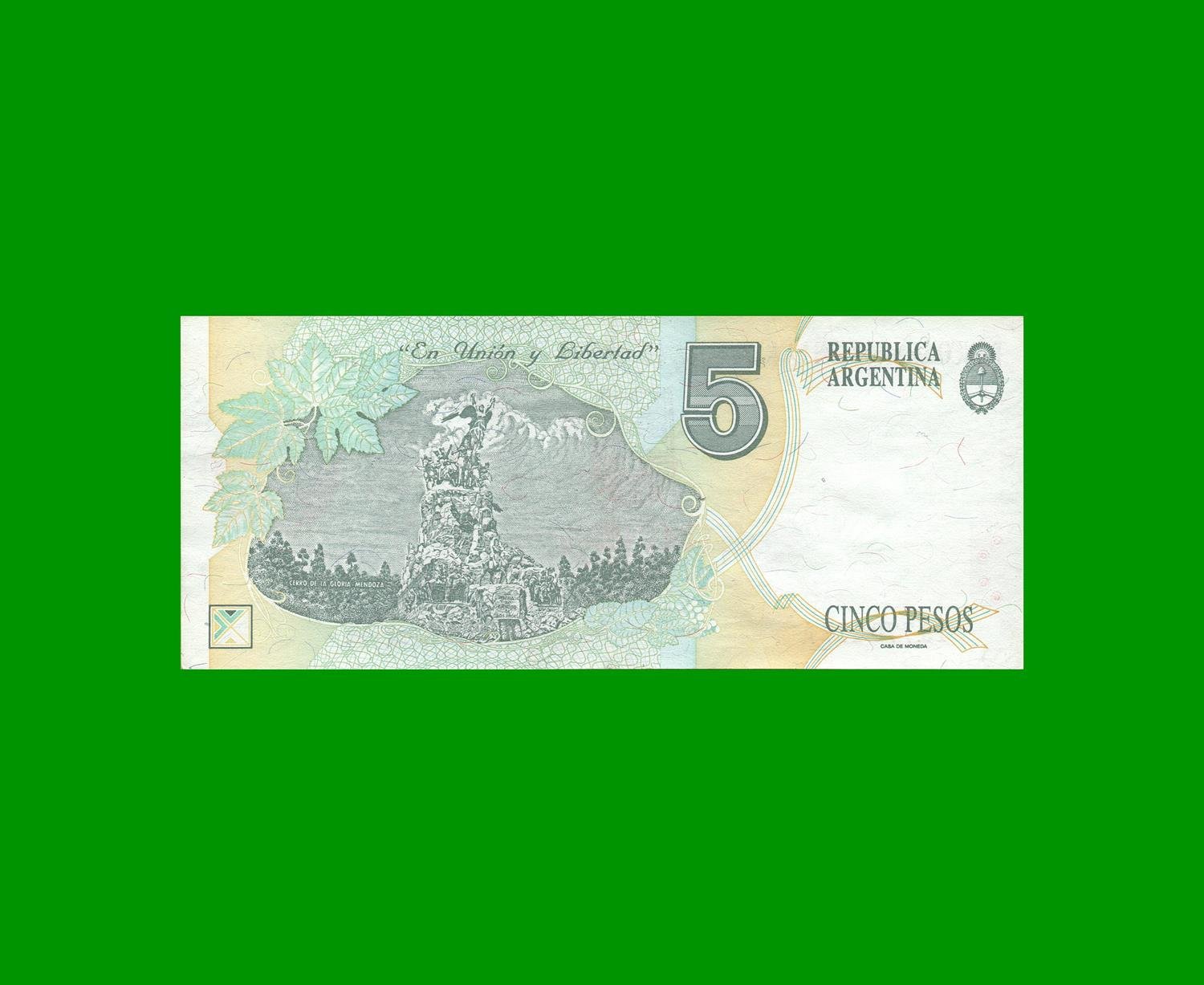 BILLETE PESOS CONVERTIBLES PRIMER DISEÑO $5,00, BOT 3024, ESTADO EXCELENTE.-