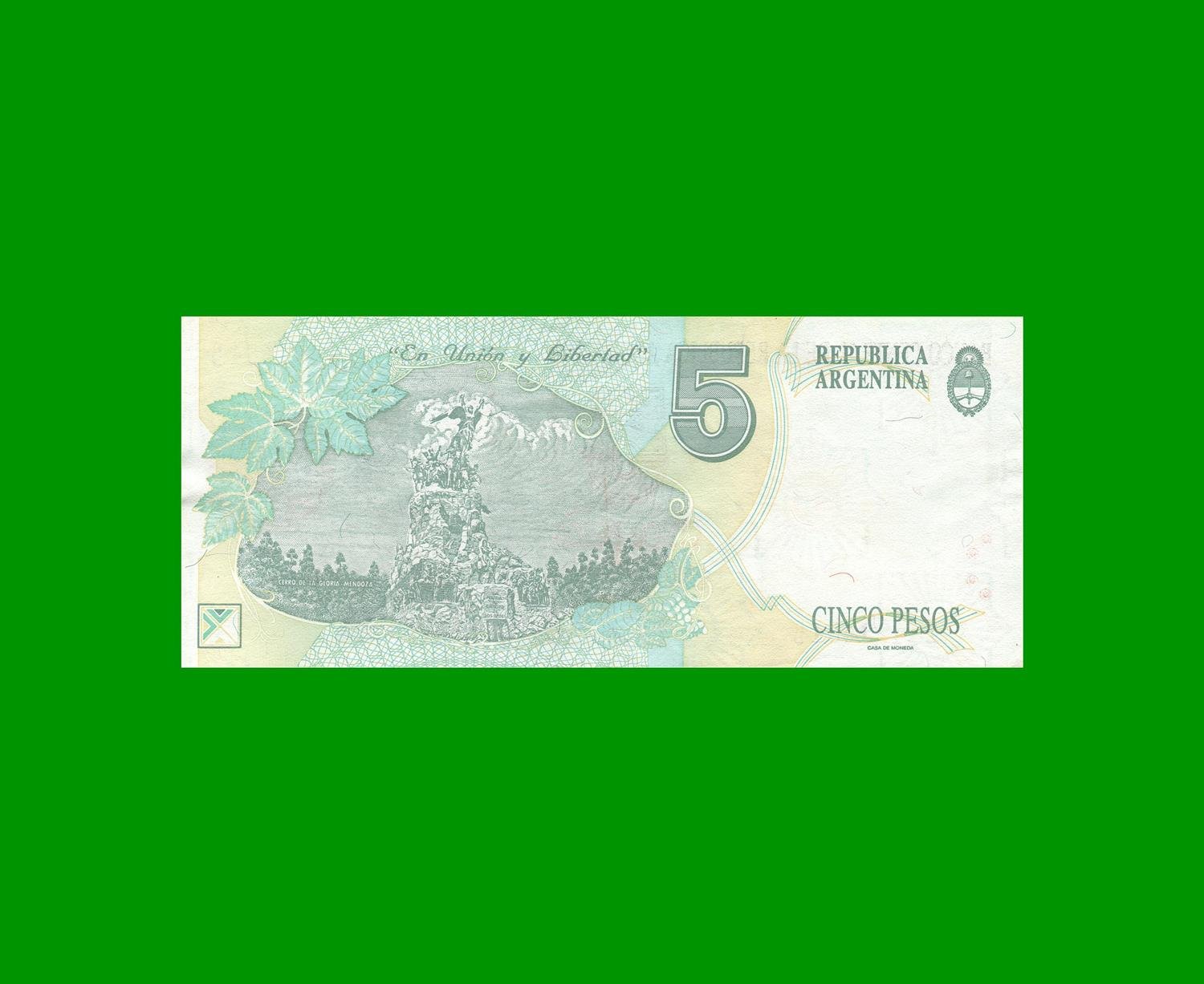 BILLETE PESOS CONVERTIBLES PRIMER DISEÑO $5,00, BOT 3030, ESTADO EXCELENTE.-