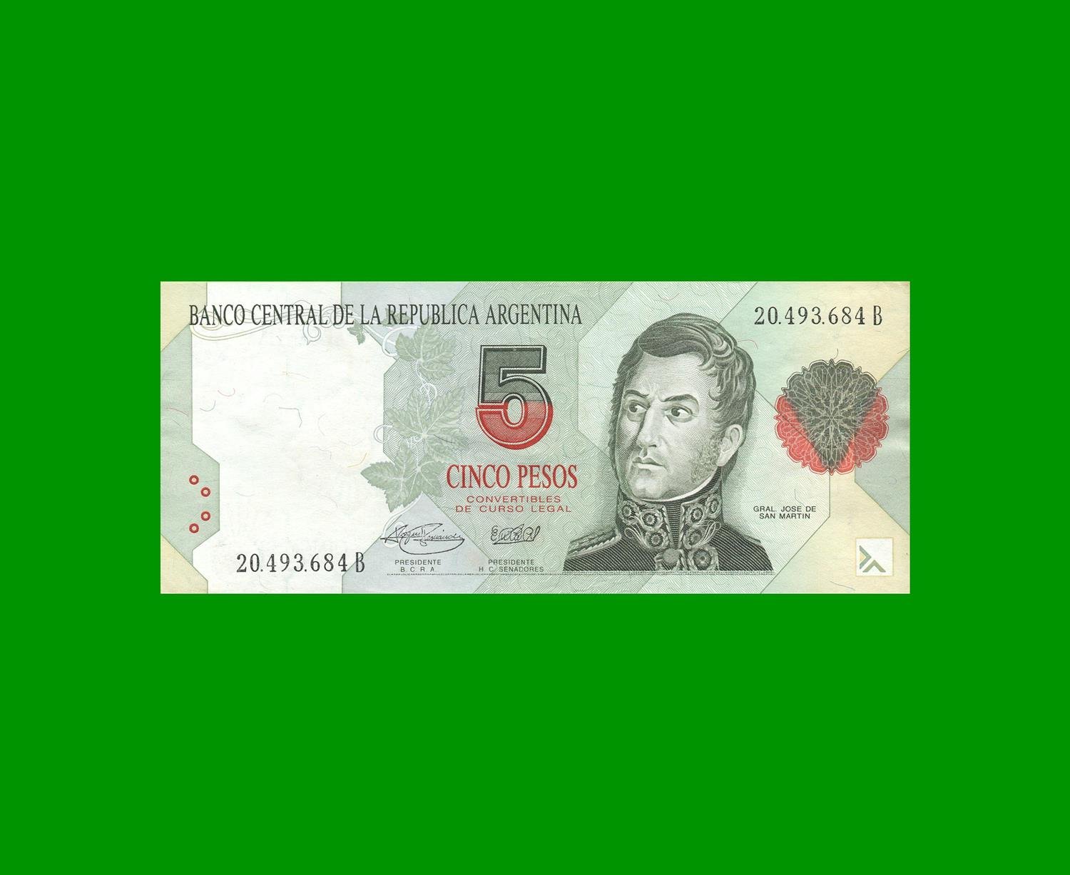 BILLETE PESO CONVERTIBE PRIMER DISEÑO $ 5,00.-