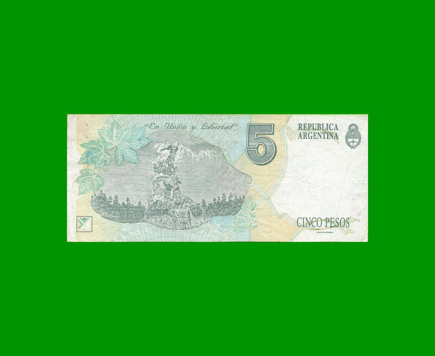 BILLETE PESOS CONVERTIBLES PRIMER DISEÑO $5,00, BOT 3035, ESTADO MUY BUENO+.-
