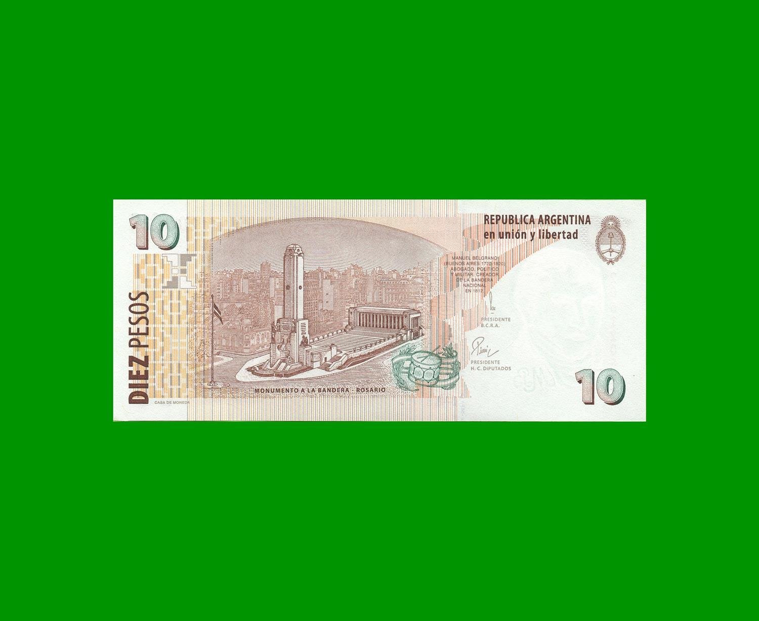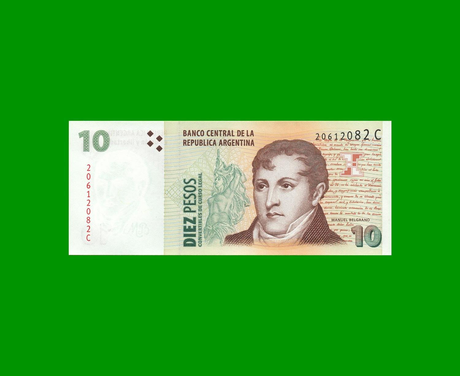 BILLETE PESOS CONVERTIBLES SEGUNDO DISEÑO $10,00, BOT 3405 ESTADO SIN CIRCULAR.-