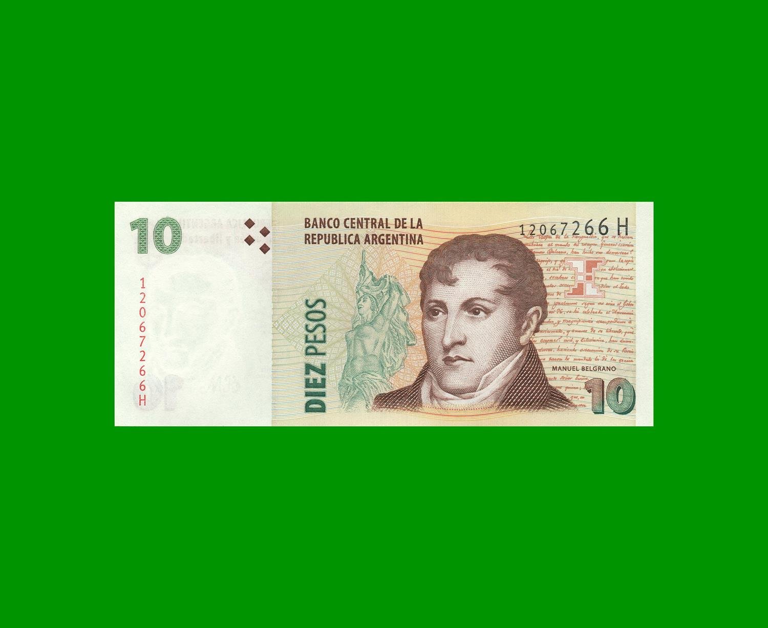BILLETE PESOS CONVERTIBLES SEGUNDO DISEÑO $10,00, BOT 3425 ESTADO SIN CIRCULAR.-