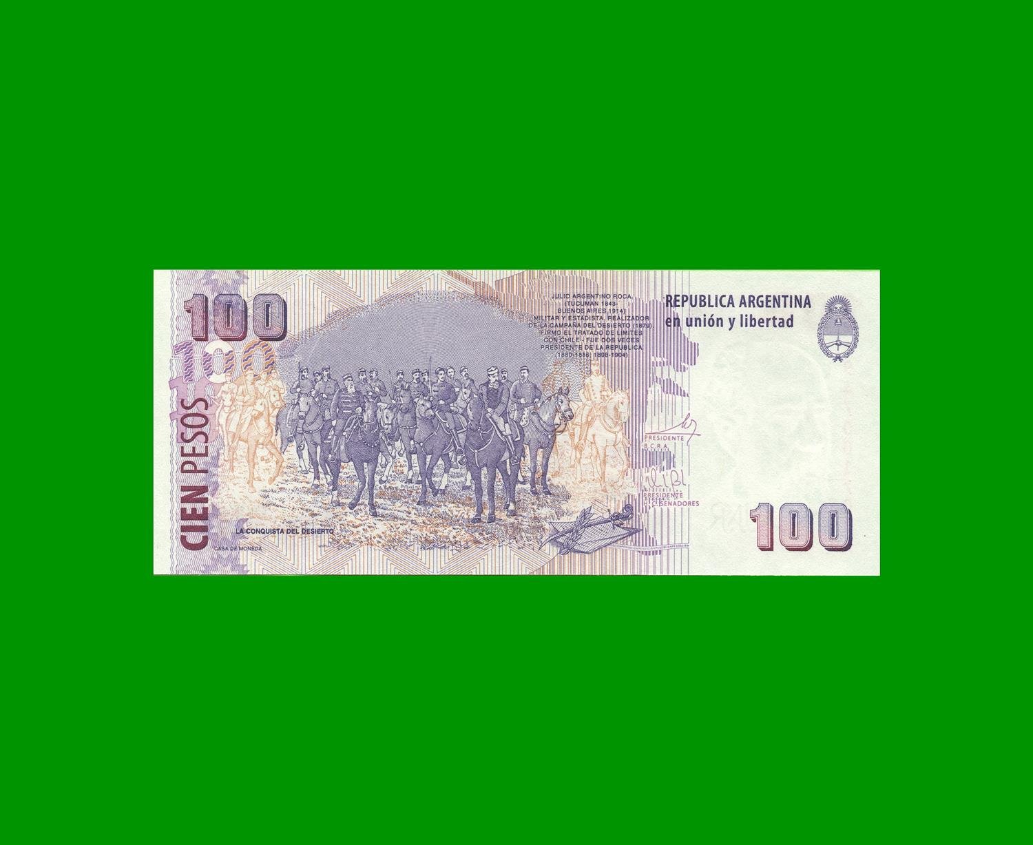 BILLETE PESOS CONVERTIBLES SEGUNDO DISEÑO $100,00, BOT 3759 ESTADO SIN CIRCULAR.-