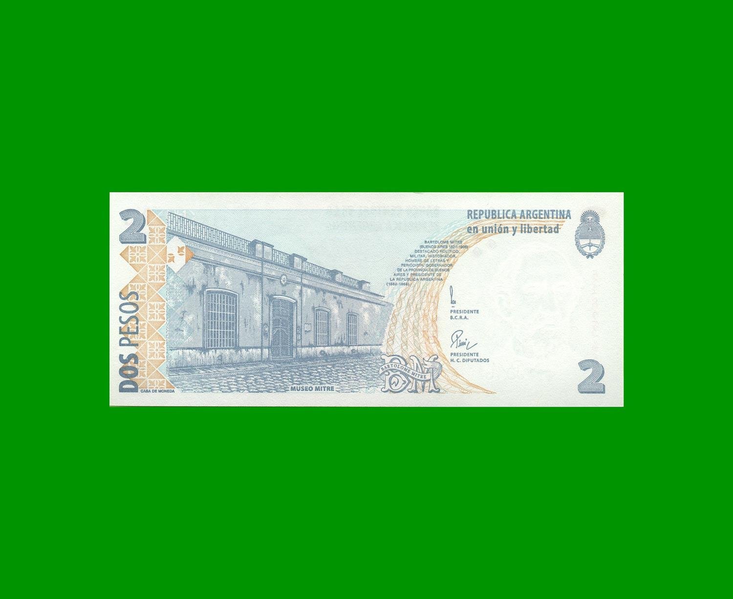 BILLETE PESOS CONVERTIBLES SEGUNDO DISEÑO $2,00, BOT 3206 ESTADO SIN CIRCULAR.-