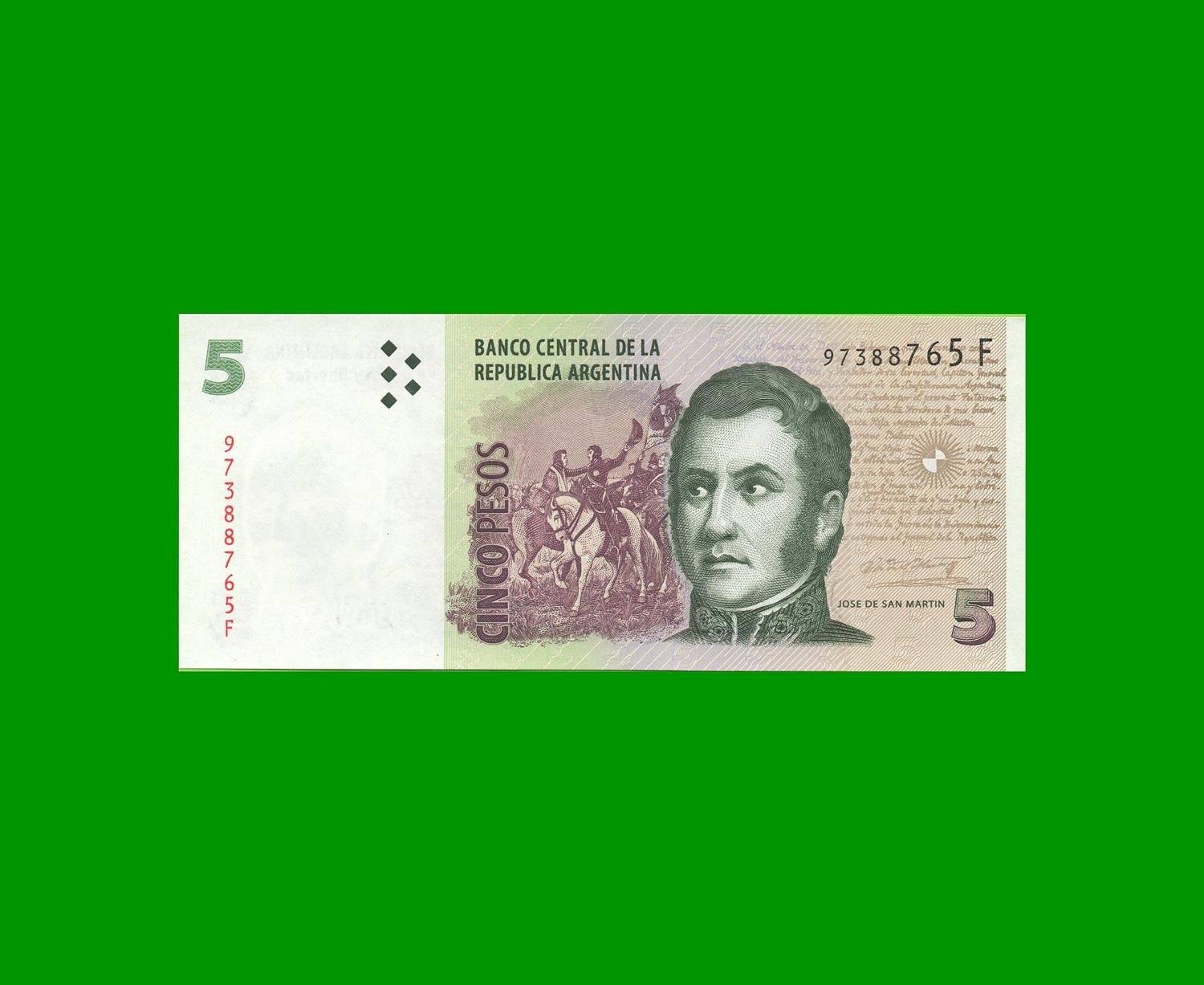 BILLETE PESOS CONVERTIBLES SEGUNDO DISEÑO $5,00, BOT 3327 ESTADO SIN CIRCULAR.-