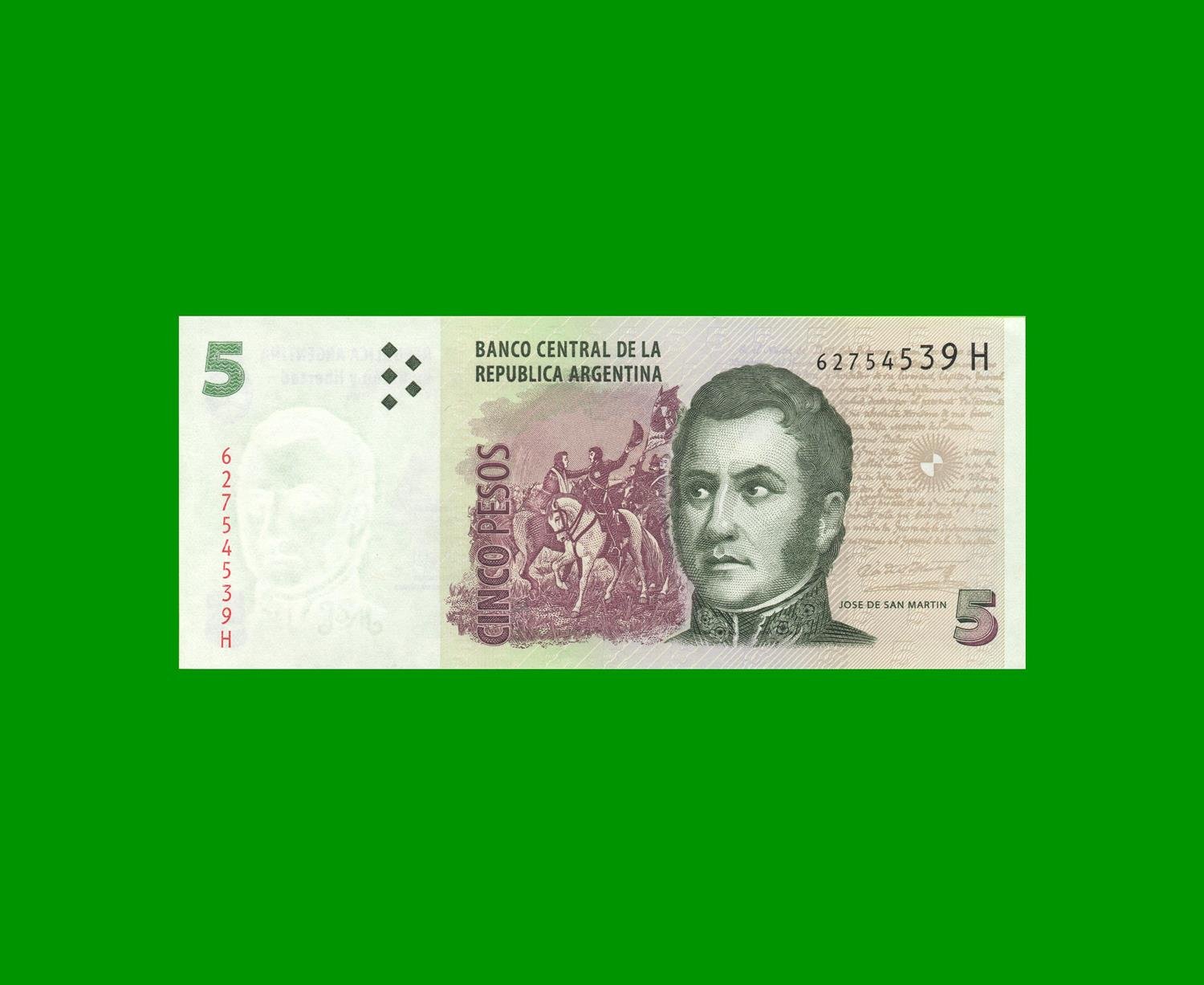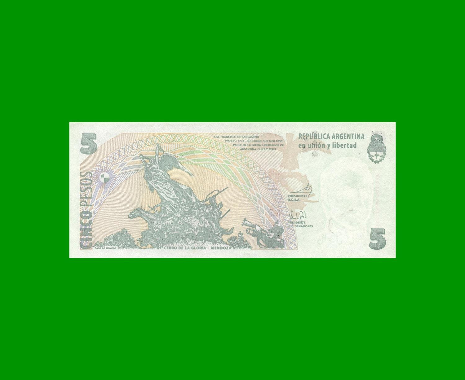 BILLETE PESOS CONVERTIBLES SEGUNDO DISEÑO $5,00, BOT 3332 ESTADO SIN CIRCULAR.-