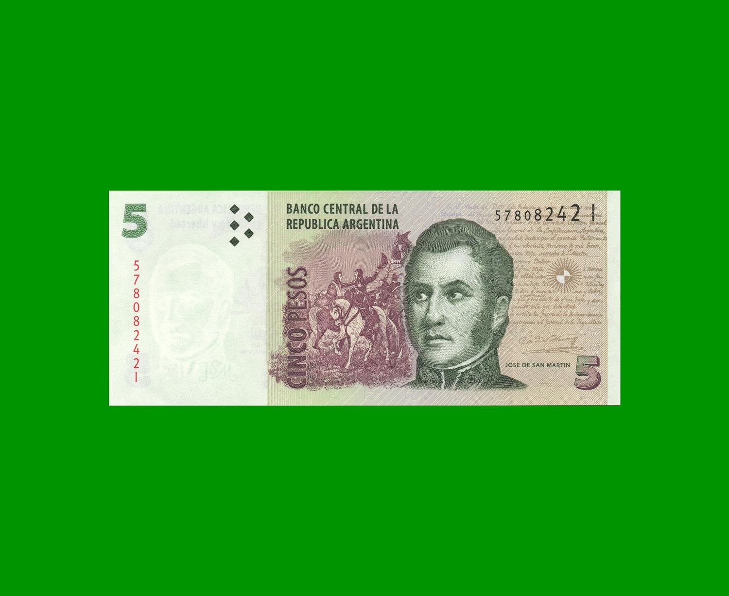 BILLETE PESOS CONVERTIBLES SEGUNDO DISEÑO $5,00, BOT 3335 ESTADO SIN CIRCULAR.-