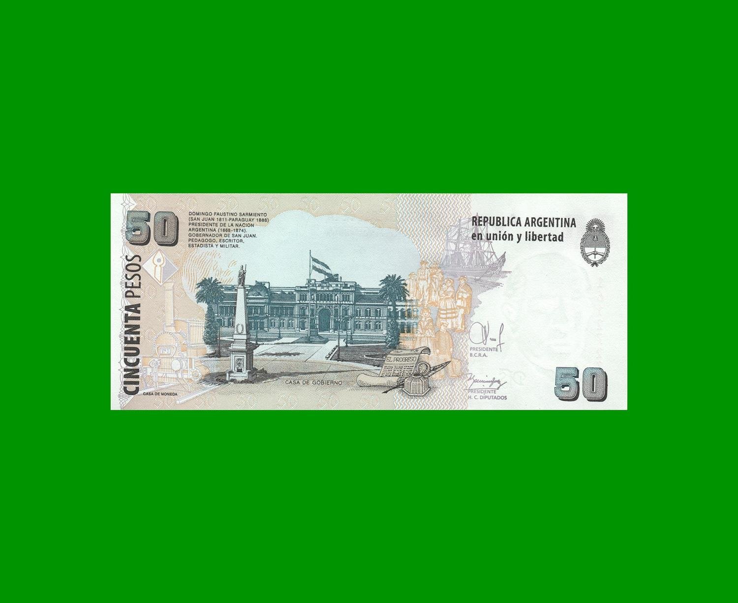 BILLETE PESOS CONVERTIBLES SEGUNDO DISEÑO $50,00, COL 802b, ESTADO SIN CIRCULAR.-