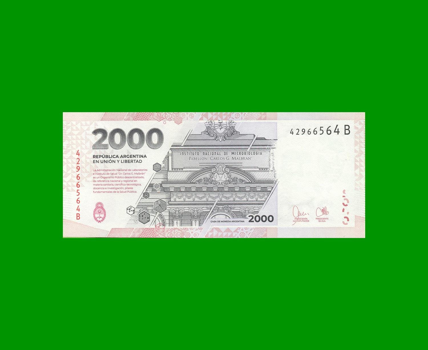 BILLETE PESOS HEROINAS Y HEROES DE LA PATRIA $ 2.000,00, COL N02b, ESTADO SIN CIRCULAR.-