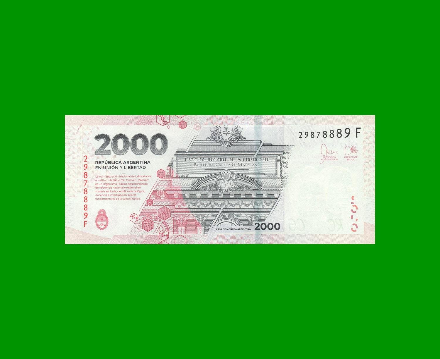 BILLETE PESOS HEROINAS Y HEROES DE LA PATRIA $ 2.000,00, COL N03b, ESTADO SIN CIRCULAR.-