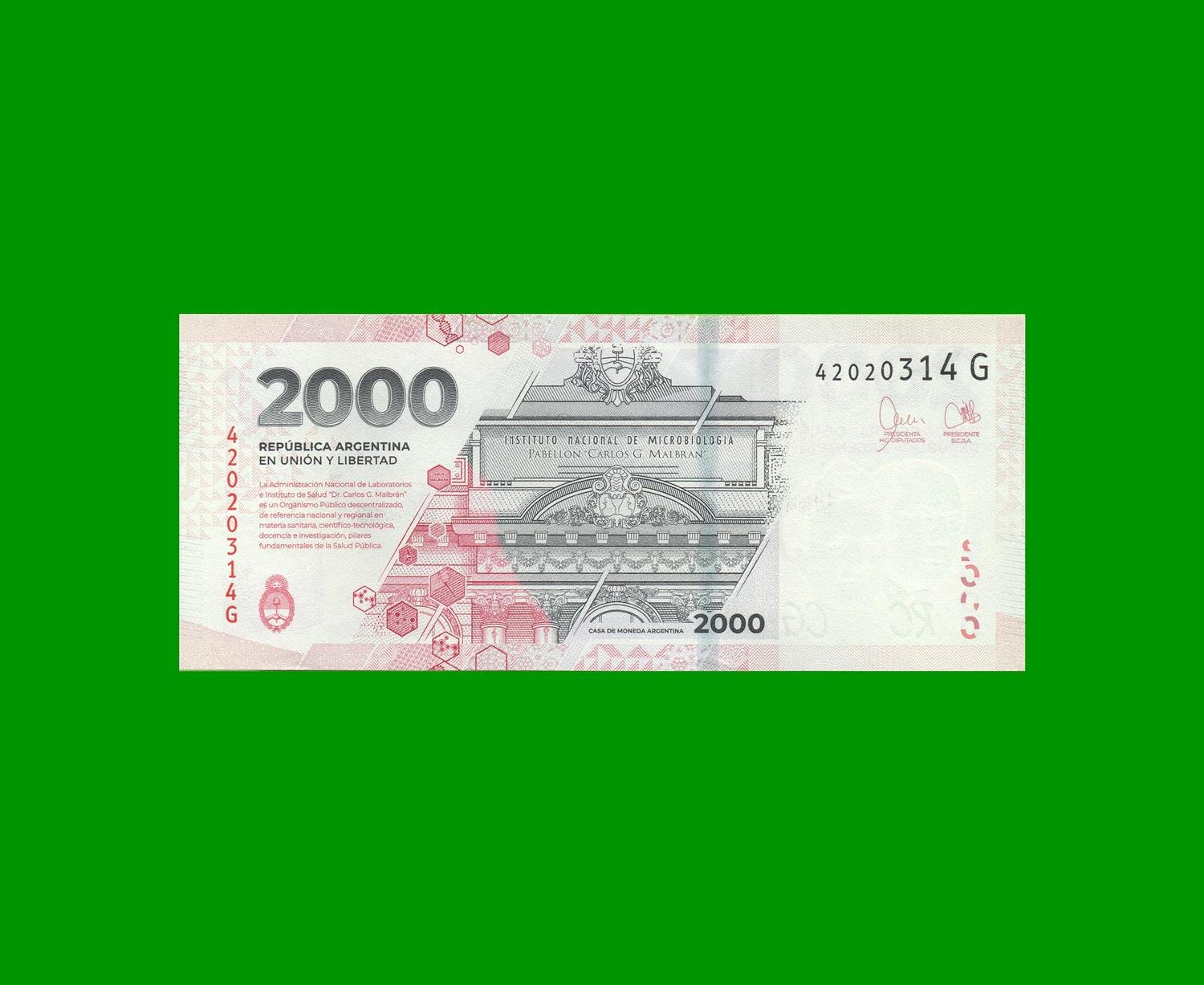 BILLETE PESOS HEROINAS Y HEROES DE LA PATRIA $ 2.000,00, COL N03c, ESTADO SIN CIRCULAR.-