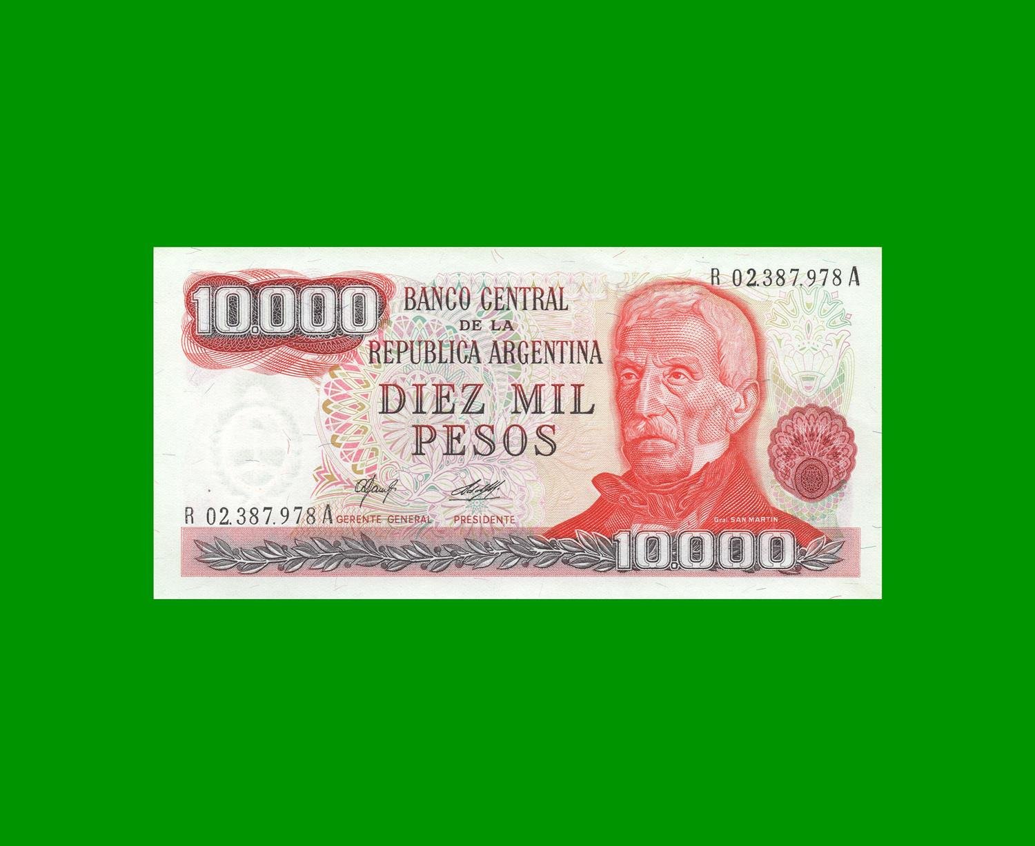 BILLETE PESOS LEY 18188, REPOSICION, $ 10,000,00, BOT R2489, SIN CIRCULAR.-