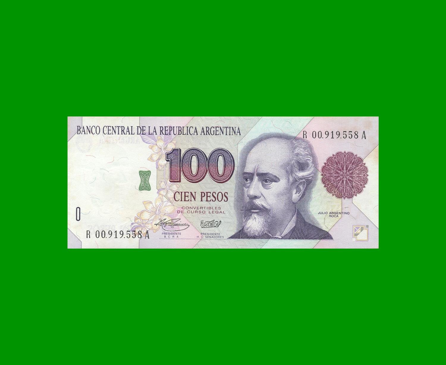 BILLETE PRIMER DISEÑO, REPOSICION, $ 100,00 BOT R3081, EXCELENTE+.-