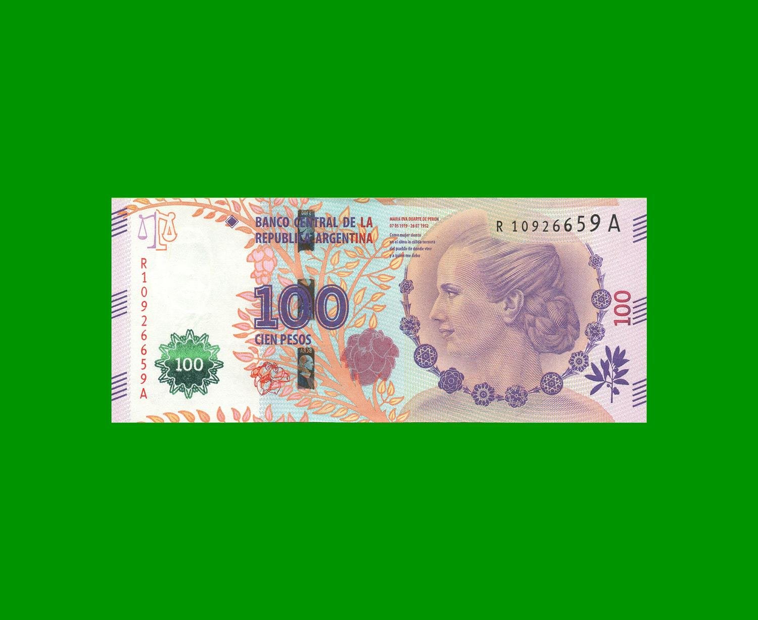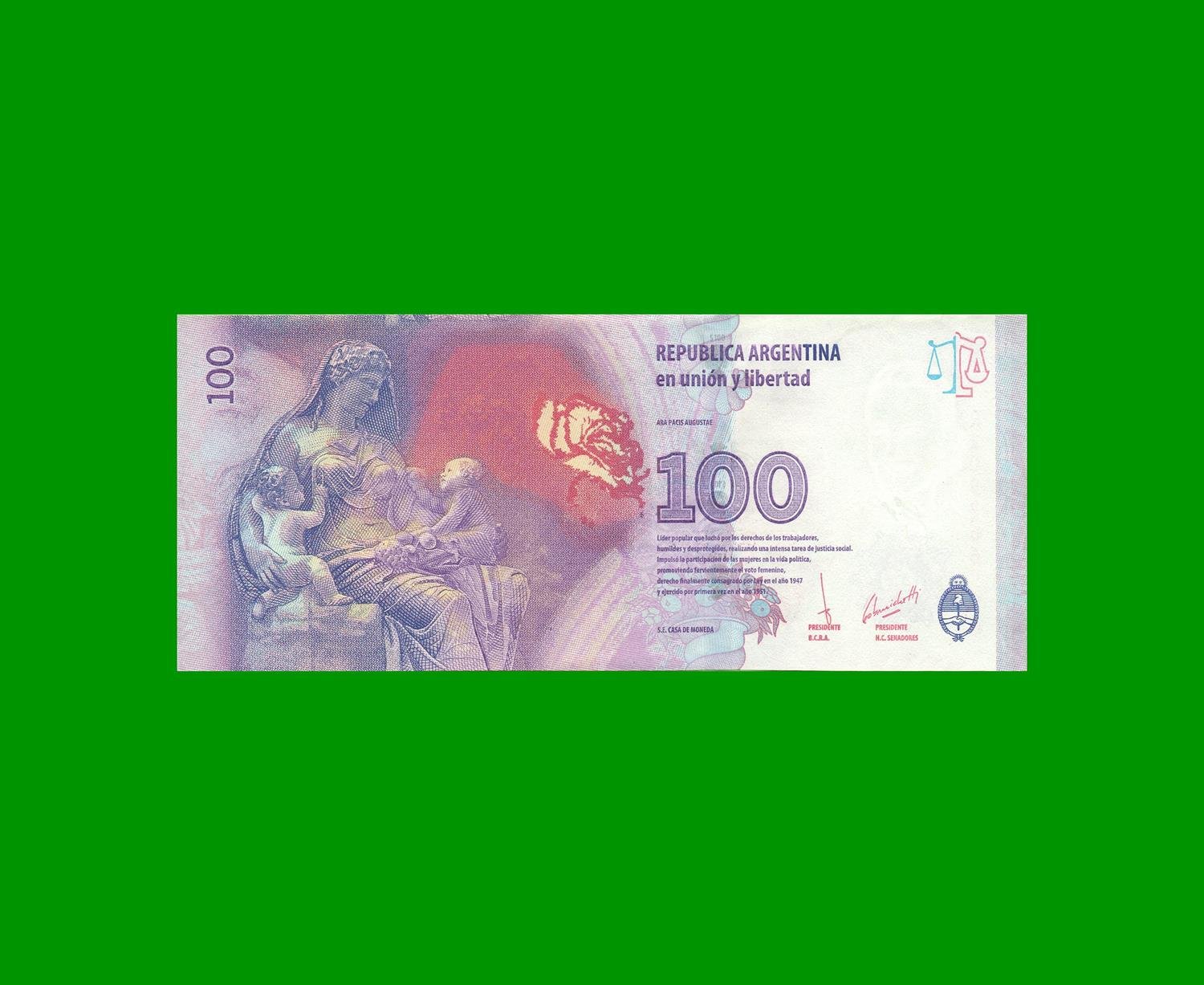 BILLETE TERCER DISEÑO, REPOSICION 100,00.-