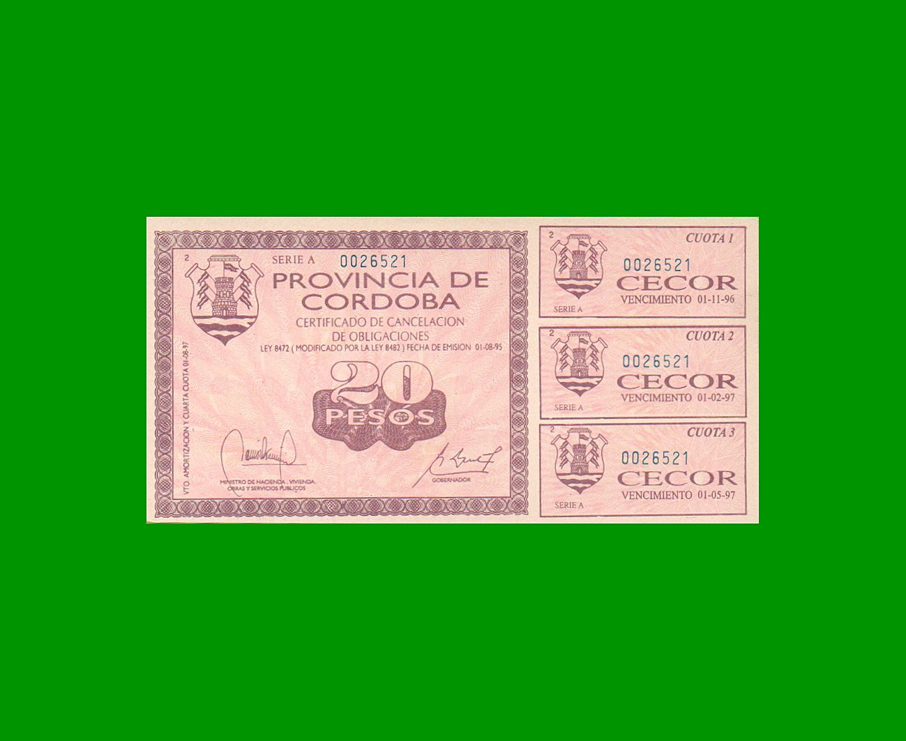 BONO DE CORDOBA, 20 PESOS, FALSO DE LA EPOCA.-