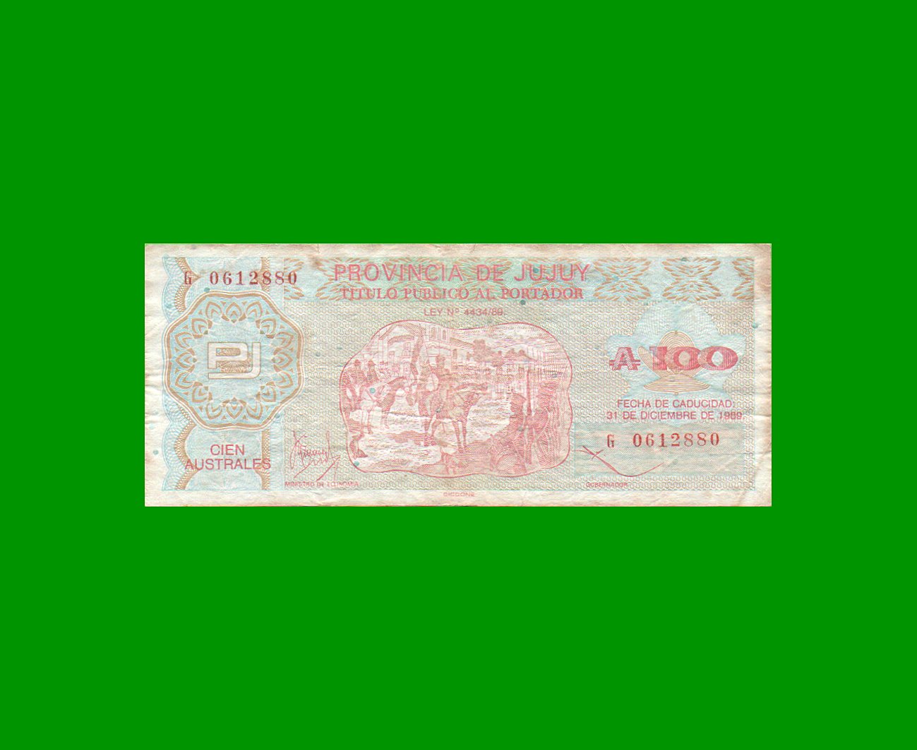 BONO DE JUJUY 100 AUSTRALES, EC 018, ESTADO MUY BUENO- .-