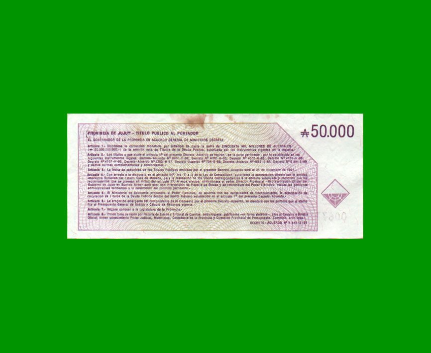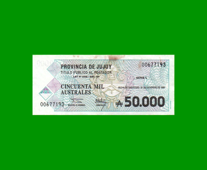 BONO DE JUJUY, 50.000 AUSTRALES.-