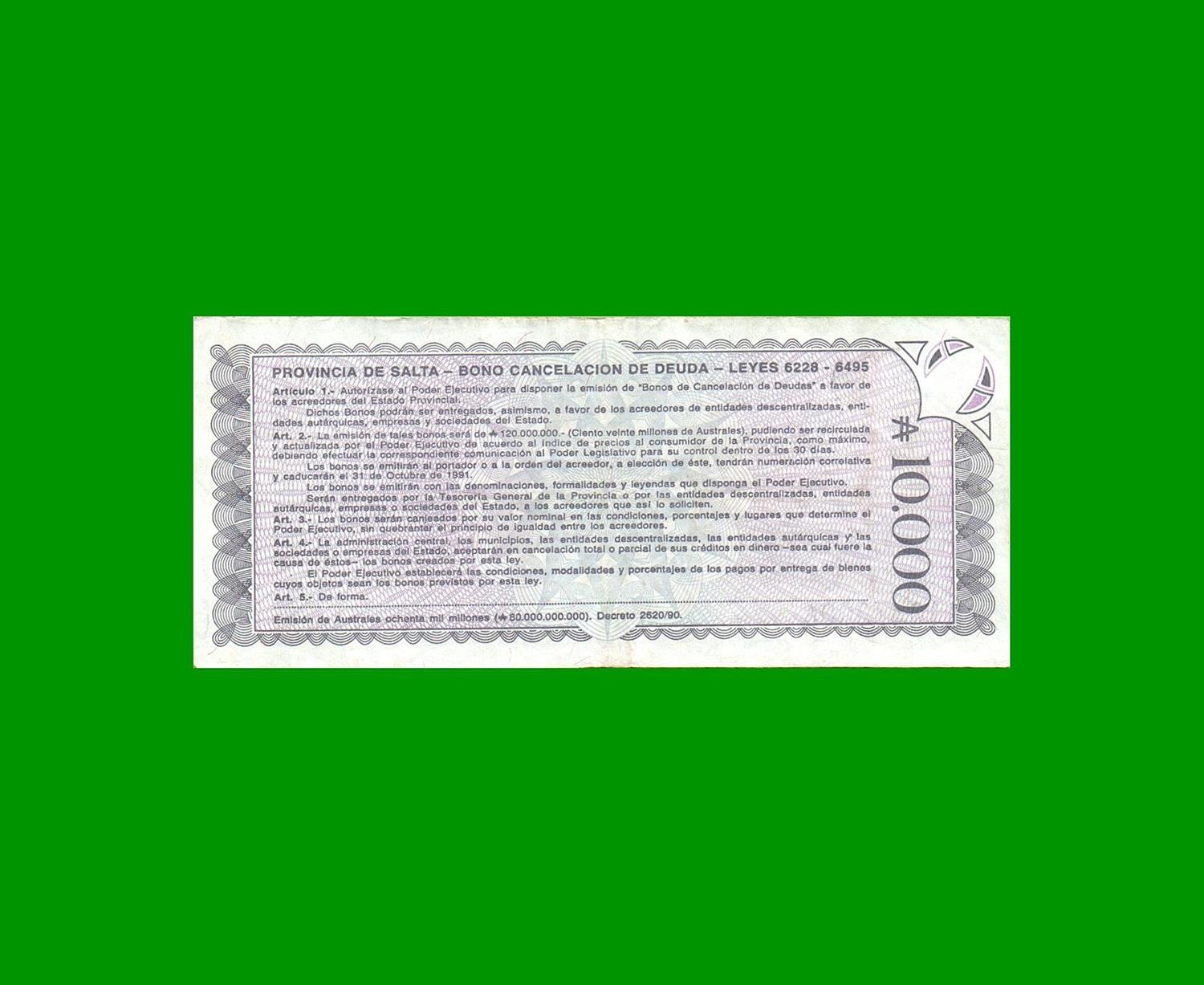 BONO DE SALTA AUSTRALES 10.000,00, EC 080, ESTADO MUY BUENO.-