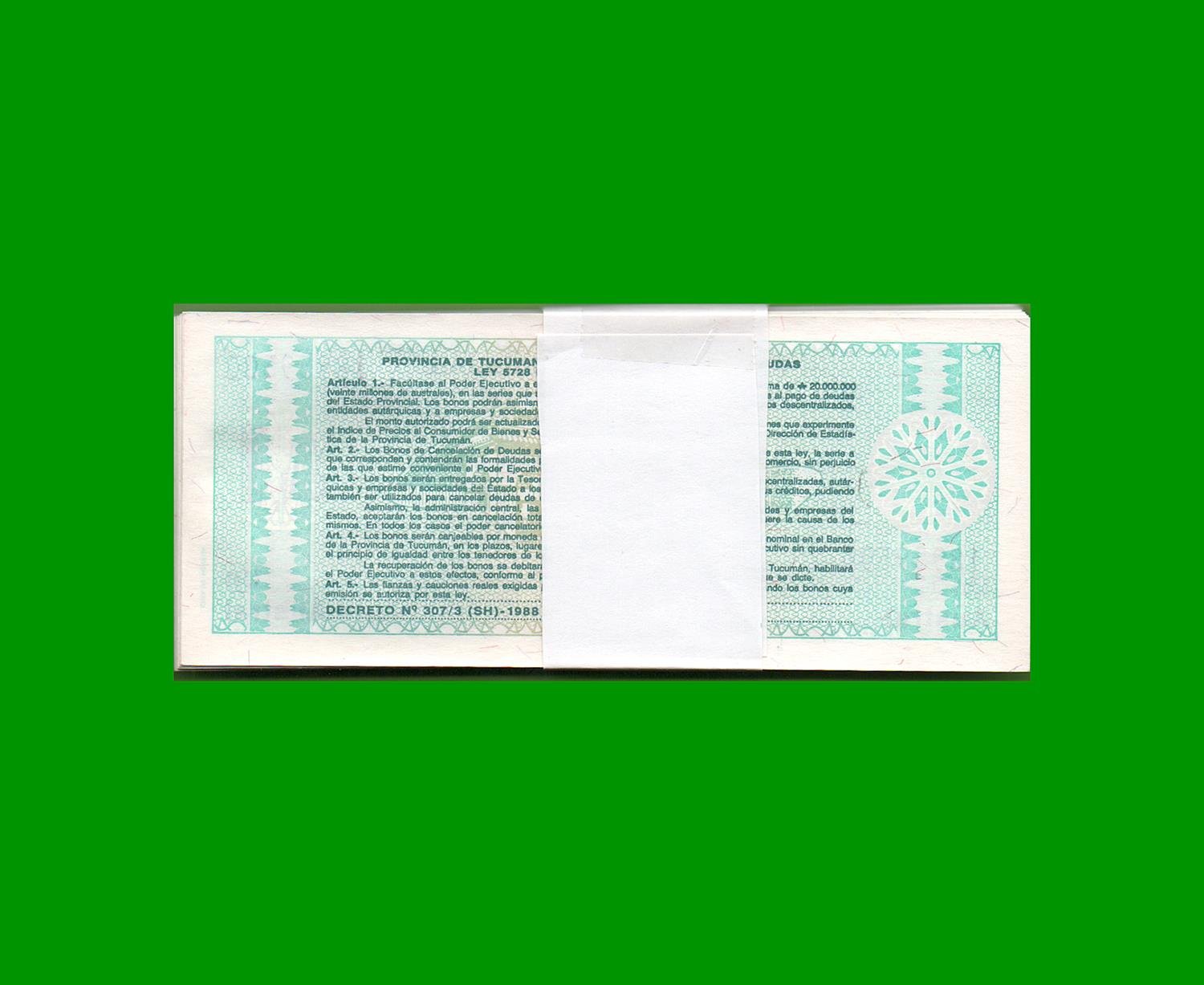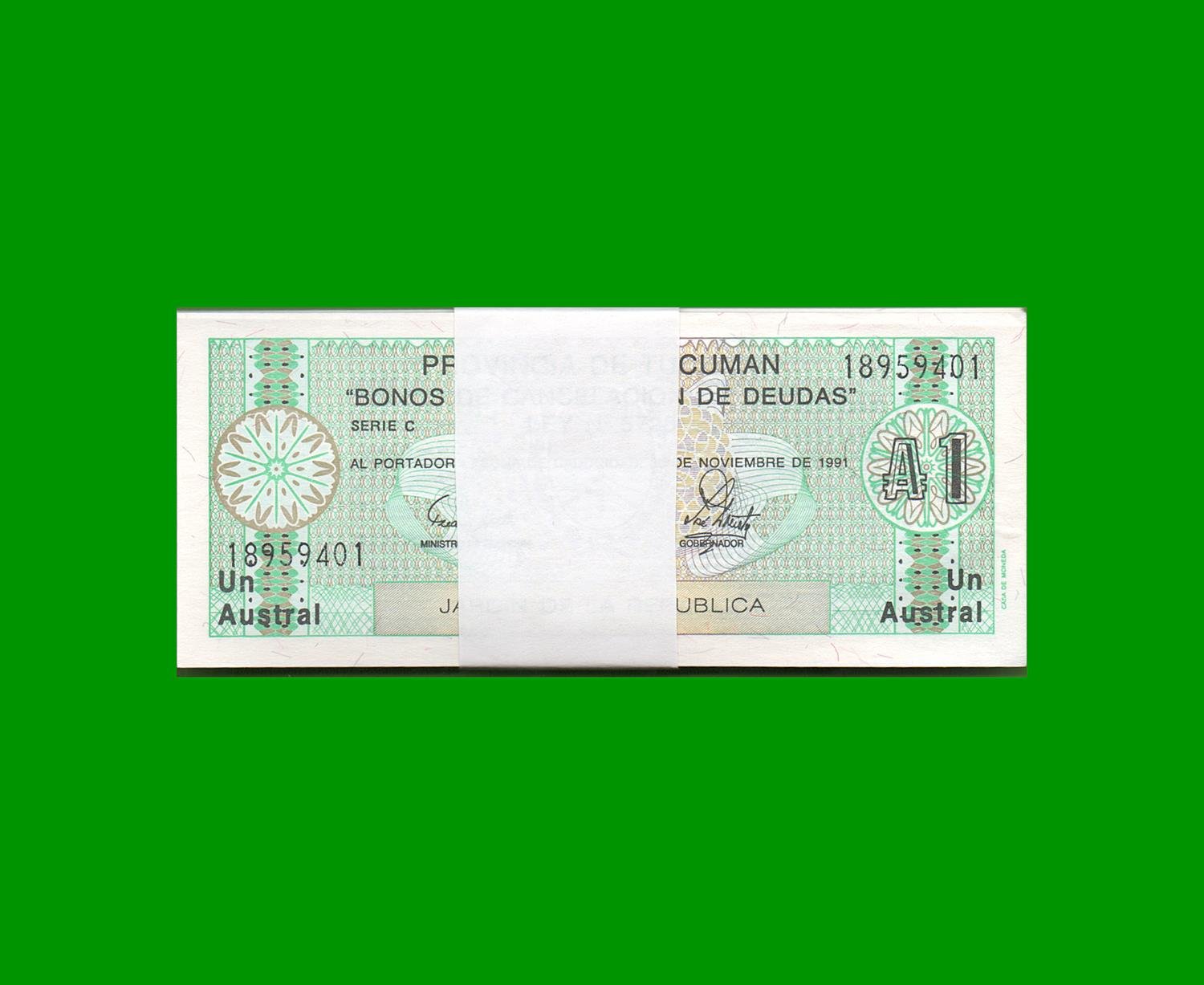 FAJO BONO 1 AUTRAL PROVINCIA TUCUMAN EC 100, ESTADO SIN CIRCULAR.-