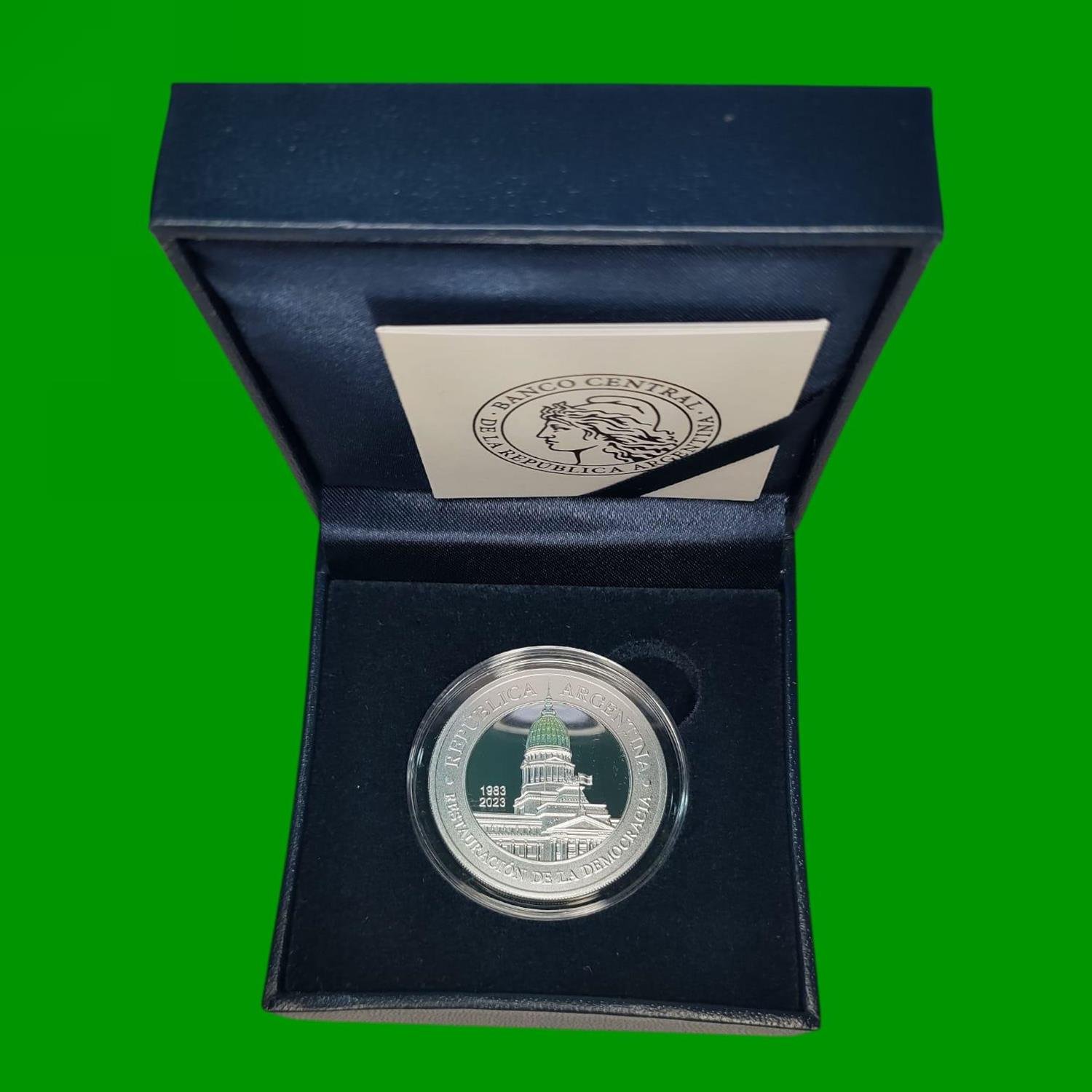 MONEDA PROOF, 40° ANIVERSARIO DE LA RESTAURACION DE LA DEMOCRACIA, $ 1,00, CON ESTUCHE Y CERTIFICADO, ESTADO UNC.-