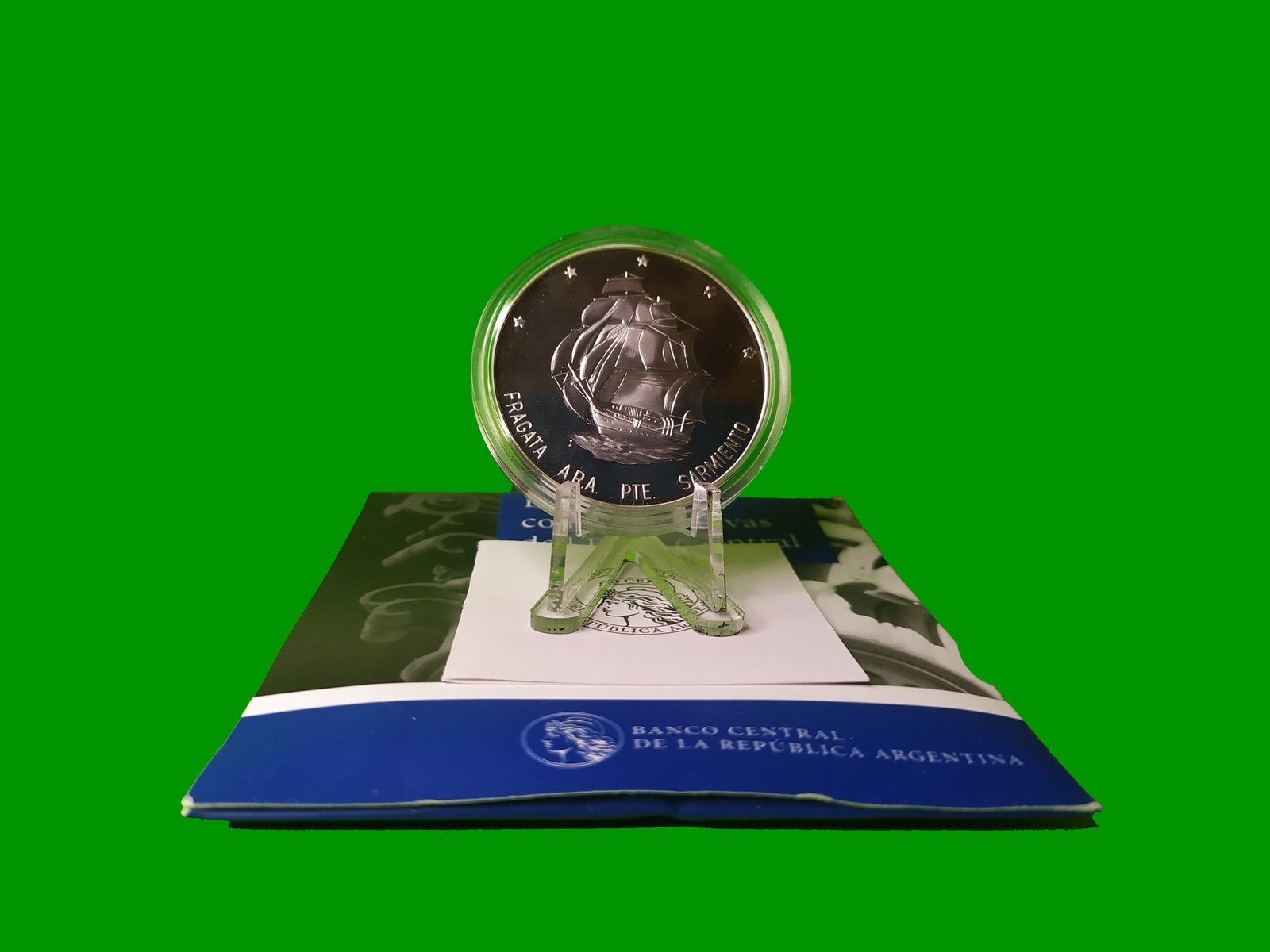 MONEDA PROOF, FRAGATA A.R.A. PTE. SARMIENTO, $ 25,00, VERSION N° 3, ARGENTINA ENCUENTRO DE DOS MUNDOS, CON CERTIFICADO, ESTADO UNC.-