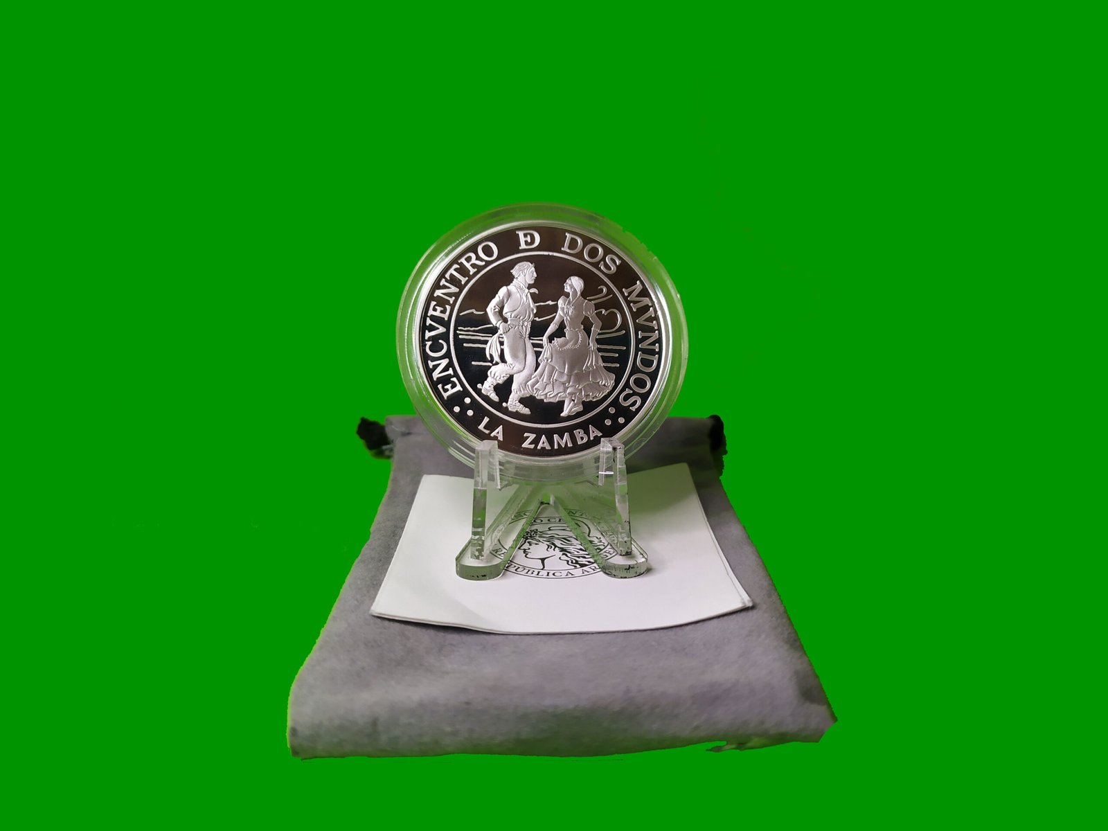 MONEDA PROOF, LA ZAMBA, $ 25,00, ARGENTINA ENCUENTRO DE DOS MUNDO, CON CERTIFICADO, ESTADO UNC.-