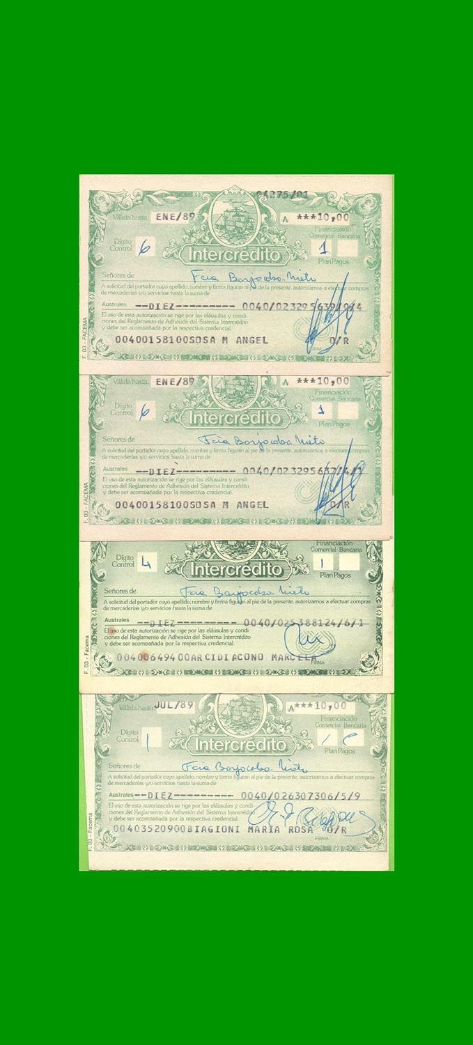 SERIE DE 4 BONOS TICKET INTERCREDITO UNIFAZ.- AÑO: 1989