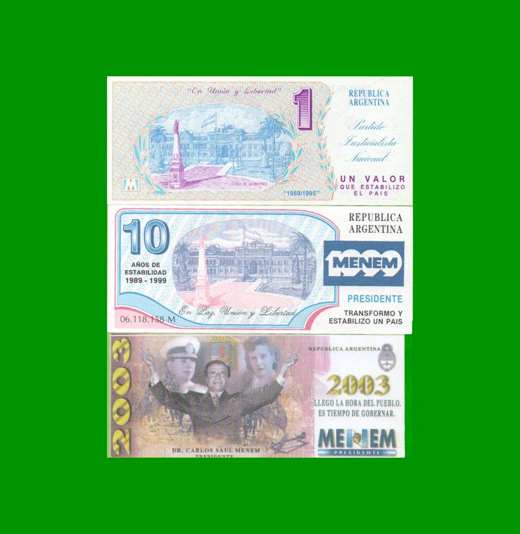 SERIE DE BILLETES PUBLICITARIOS CARLOS MENEM, COPIA/ FASCIMIL NO